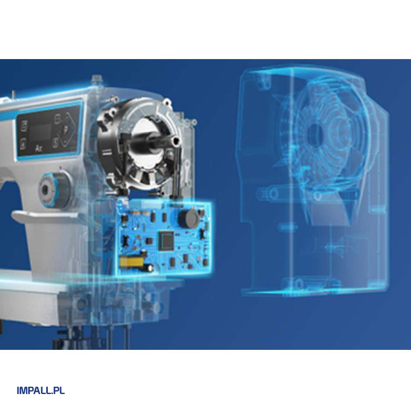 Nowoczesna stebnówka 1-igłowa z automatycznym obcinaniem nici oraz pozycjonowaniem igły. Wyposażona w innowacyjny system FST pokonywania szwów poprzecznych. Silnik o zwiększonej mocy zapewnia dużą siłę wkłucia igły i podawania materiału. Elektryczne sterowanie silnika zapewnia nieprzerwaną i stabilną pracę maszyny, umożliwiając płynne pokonywanie szwów poprzecznych i wszelkich zgrubień bez redukcji prędkości. Zintegrowane oświetlenie LED przy igielnicy.