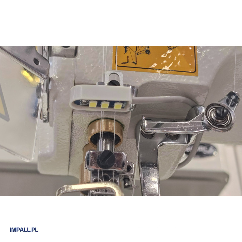 Maszyna wyposażona jest w silnik energooszczędny zamontowany na głowicy maszyny (system Direct Drive) z funkcją pozycjonowania igieł.
