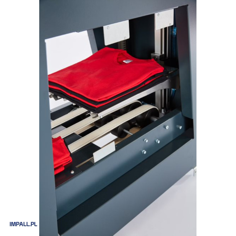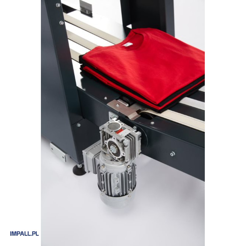 Automatyczny odbiór: Po osiągnięciu zaprogramowanej liczby ubrań w stosie, maszyna automatycznie wypycha gotowy pakiet na transporter, zwalniając miejsce dla kolejnej partii.