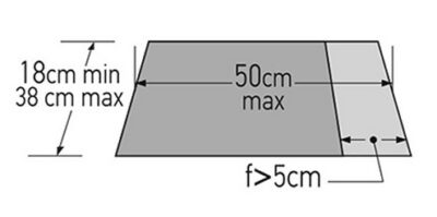 Szerokość worka 18 – 38 cm Długość zakładki (Flap) Minimum 5 cm Maksymalna grubość odzieży: 6 cm Maksymalna długość worka: 50 cm |